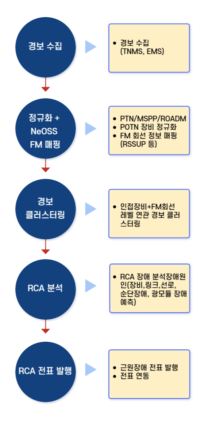 전송망 내 장애 발생 시 근원장애를 파악하여 관제 효율과 현장 대응 속도 향상