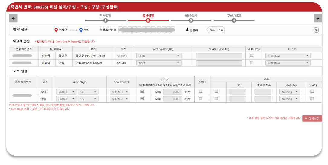 또한, 회선 변경/해지 작업시 기존 경로/L2옵션/작업정보를 자동으로 생성하여 작업 편의성을 극대화 합니다