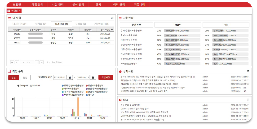 회선 경로 산출을 위한 Resource 정보를 실시간 반영하여 최적의 회선 설계 결과를 제공합니다.