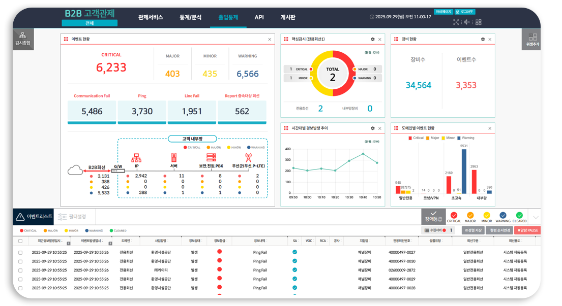고객이 고객회선 및 다양한 도메인의 현황과 상태를 실시간으로 모니터링 할 수 있습니다.